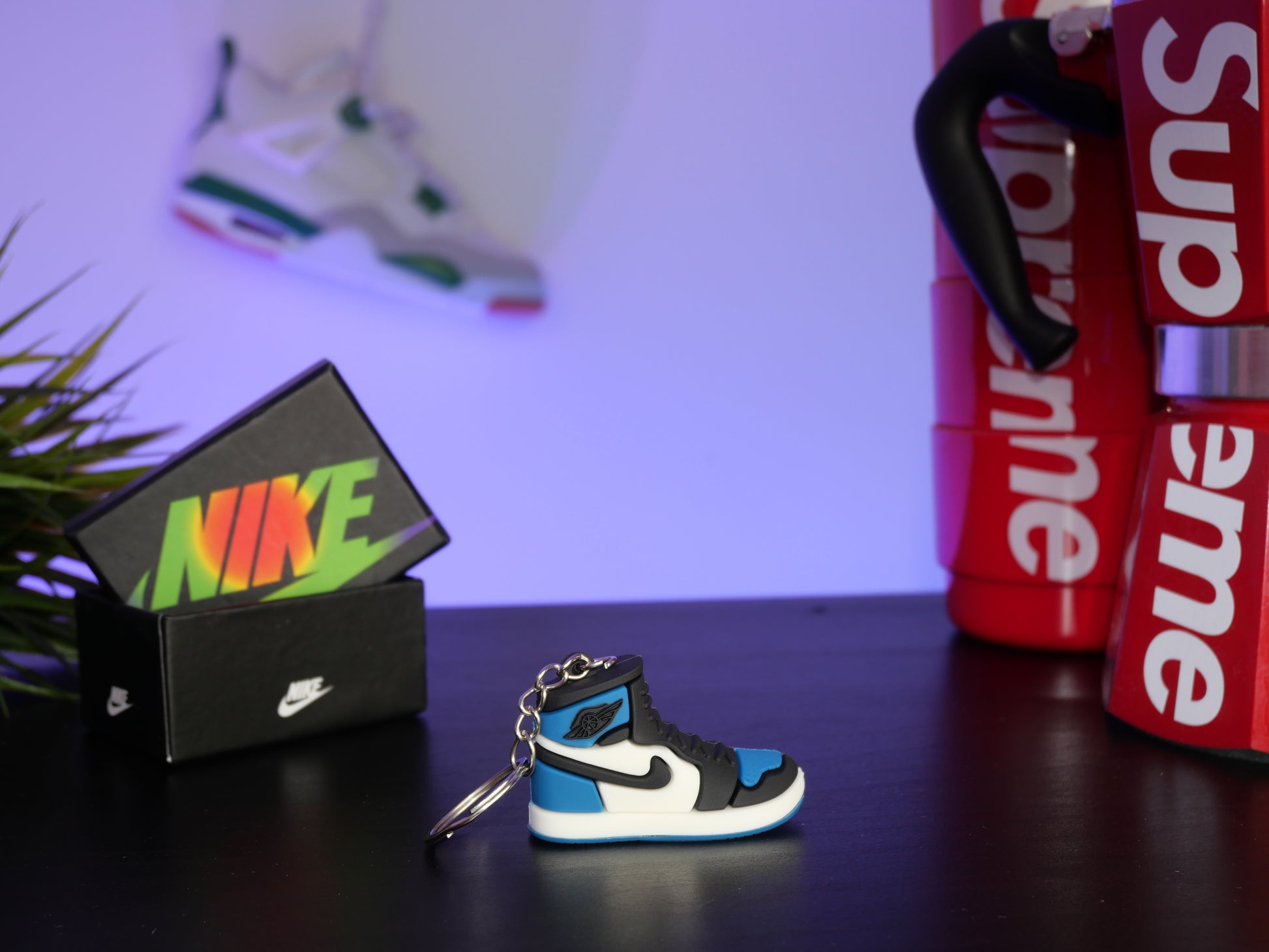 Un portachiavi a forma di sneakers, una miniatura che cattura l'essenza della cultura streetwear su scala globale. La qualità è eccellente per un oggetto di dimensioni così ridotte: la scarpa è realizzata in gomma, mentre il box è fatto di cartone, richiamando in modo autentico i materiali originali. Questo prodotto è un must-have per tutti i veri appassionati del genere!